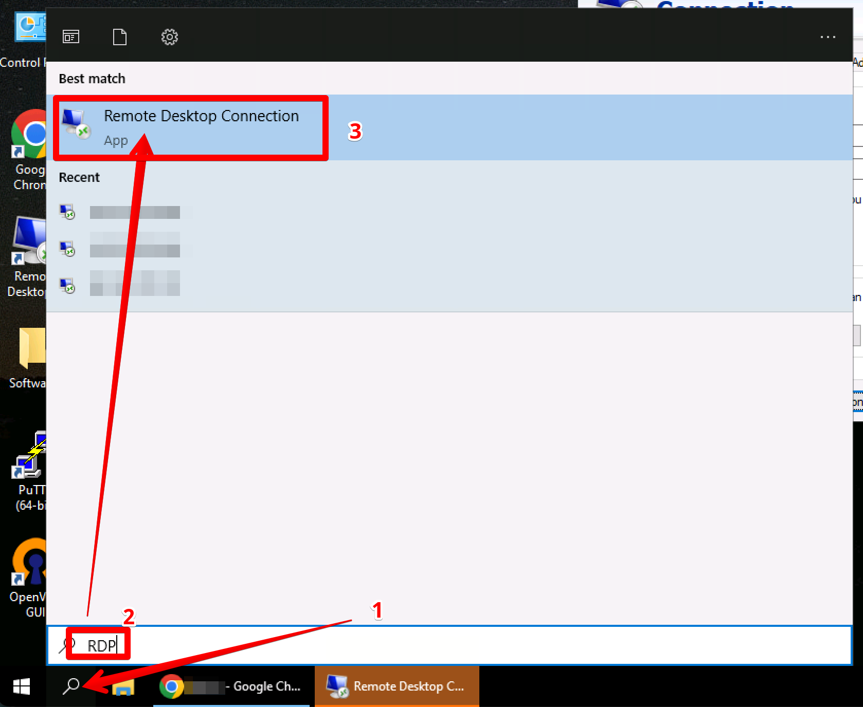 Go To the Search area and Search for RDP